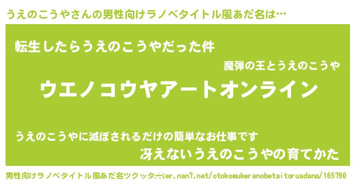 | 胡散臭い通販商品みたいなあだ名 | 『億万長者になれる霊験あらたかなお札…その名も「うえのこうや」』 |