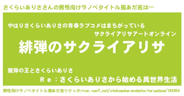 | 女子向けラノベタイトル風あだ名 | 『シンデレラさくらいありさ家の靴箱館』 |