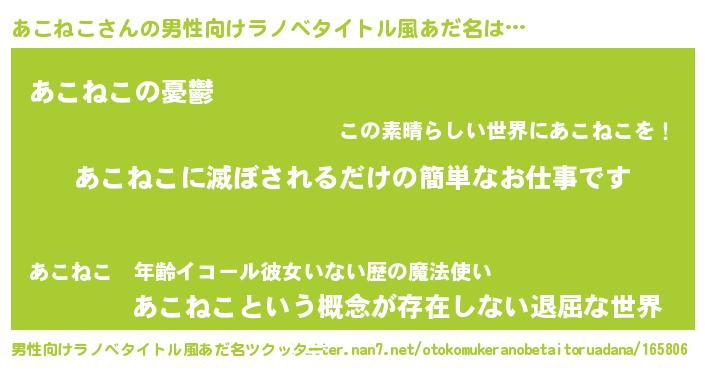 | 胡散臭い通販商品みたいなあだ名 | 『億万長者になれる霊験あらたかなお札…その名も「あこねこ」』 |
