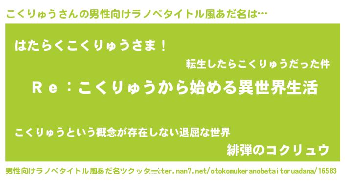 | 意味不明あだ名 | 『自称こくりゅう』『永久保存こくりゅう』 |