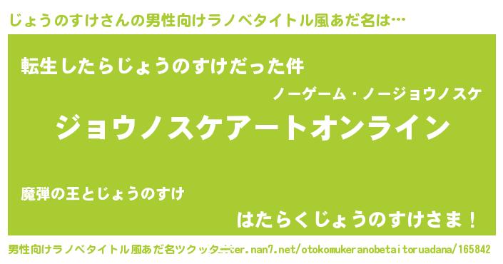 | 胡散臭い通販商品みたいなあだ名 | 『億万長者になれるブレスレット…その名も「じょうのすけ」』 |