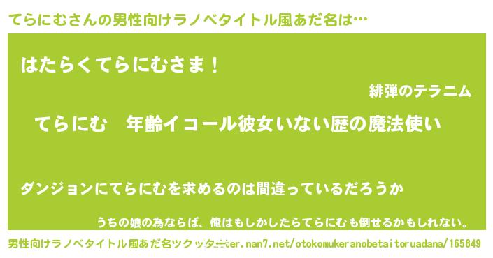 | 意味不明あだ名 | 『ヨモギ科てらにむ属』『自称てらにむ』 |