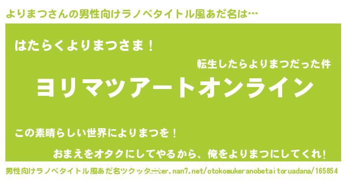 | 胡散臭い通販商品みたいなあだ名 | 『億万長者になれる霊験あらたかなお札…その名も「よりまつ」』 |