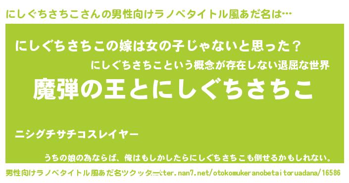 | 意味不明あだ名 | 『住所不定無職にしぐちさちこ(10歳)』 |