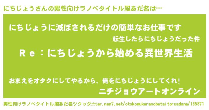 | 意味不明あだ名 | 『自称にちじょう』『ペロリンにちじょう』 |
