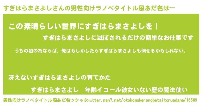 | 女子向けラノベタイトル風あだ名 | 『すぎはらまさよし伯爵の花嫁』 |