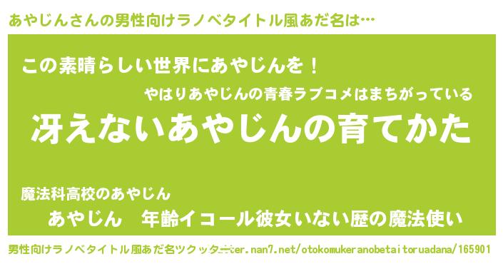 | 女子向けラノベタイトル風あだ名 | 『男装あやじんの憂鬱な任務』 |