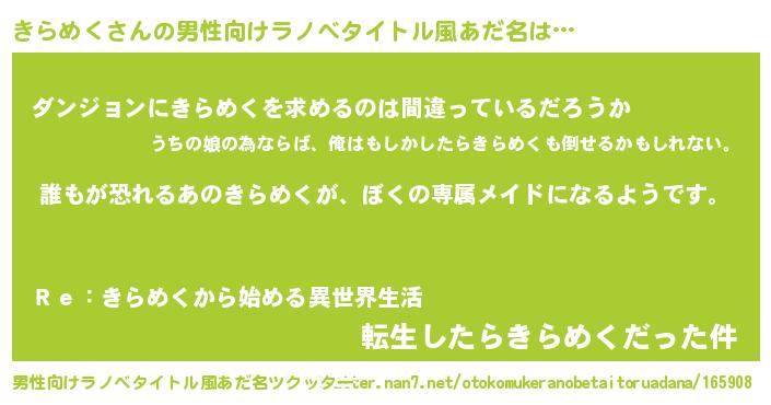 きらめくさんの男性向けラノベタイトル風あだ名をツクッター!