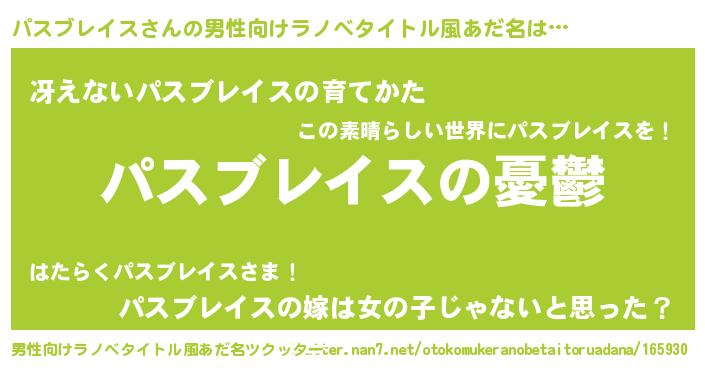 | ヒーロー風カッコイイあだ名 | 『スーパーパスブレイス』『魔戒騎士パス』 |