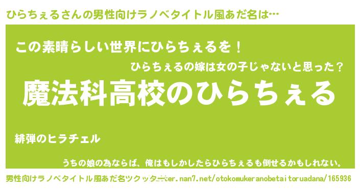 | 女子向けラノベタイトル風あだ名 | 『ひらちぇるなんてお断りですっ。』 |