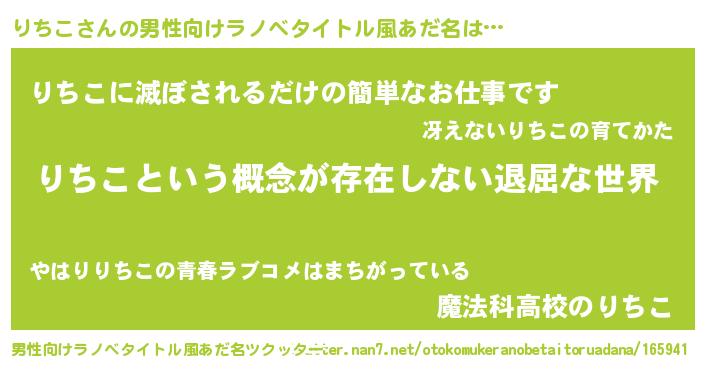 | 意味不明あだ名 | 『永久保存りちこ』『自称りちこ』 |