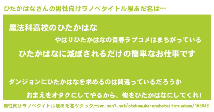 | 女子向けラノベタイトル風あだ名 | 『横柄ひたかはなと宰相陛下』 |