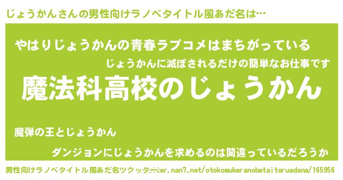 | 女子向けラノベタイトル風あだ名 | 『じょうかんなんてお断りですっ。』 |