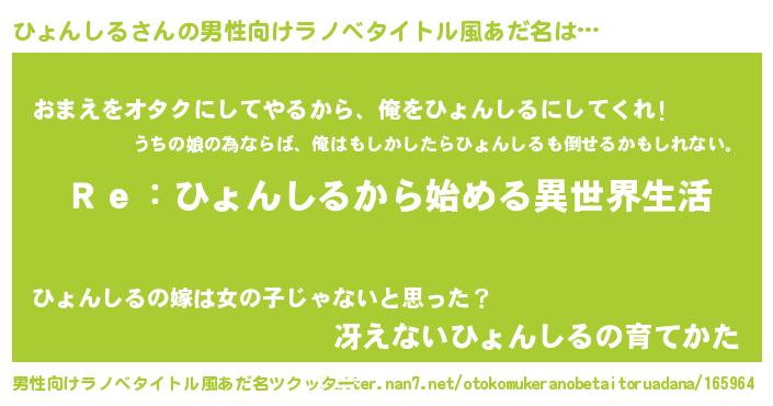 | 女子向けラノベタイトル風あだ名 | 『闇のひょんしる』『ひょんしる恋絵巻』 |
