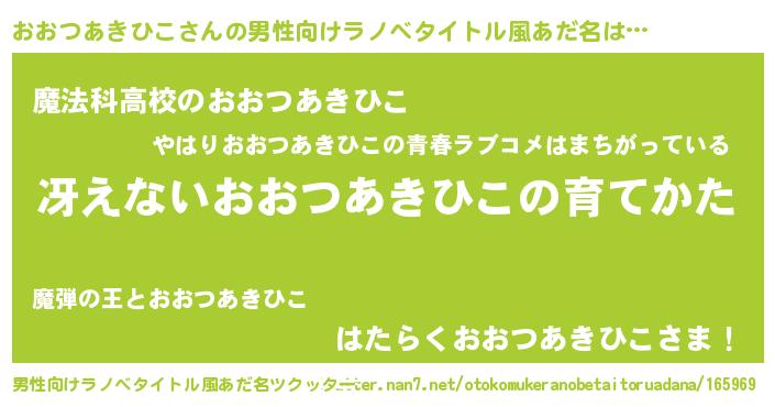 | 意味不明あだ名 | 『自称おおつあきひこ』 |