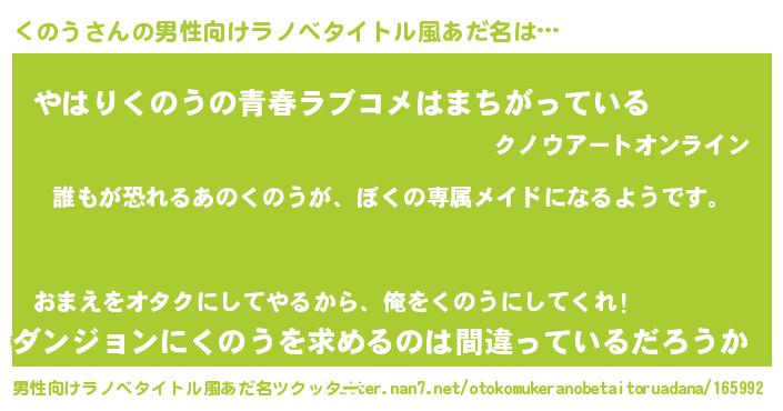 | ヘコむあだ名 | 『くのう(笑)』『豆乳』『くのっぺ』 |
