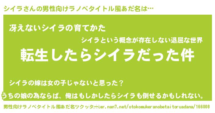 | 女子向けラノベタイトル風あだ名 | 『婚約破棄系悪役シイラに転生したので、保身に走りました。』 |