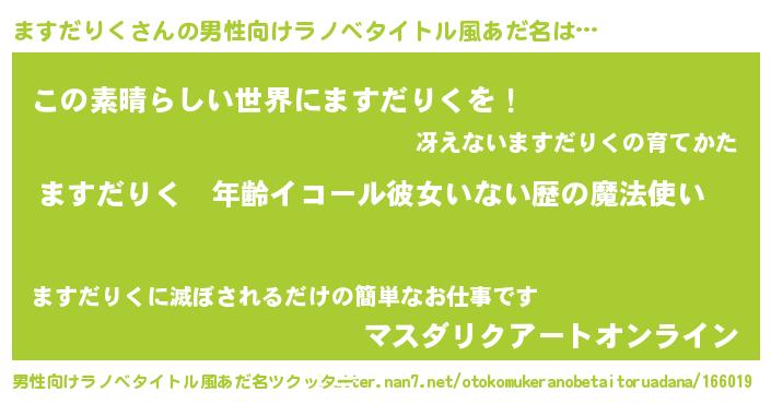 | 意味不明あだ名 | 『ニラ科ますだりく属』『自称ますだりく』 |
