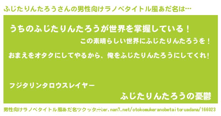 | 女子向けラノベタイトル風あだ名 | 『ふじたりんたろう夫妻のなれそめ』 |