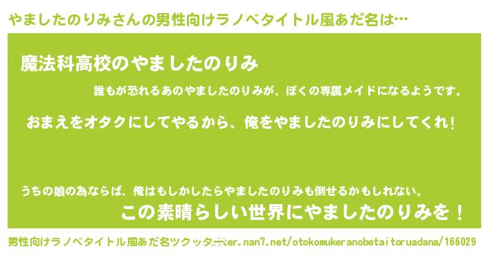 | 女子向けラノベタイトル風あだ名 | 『やましたのりみ恋絵巻』 |