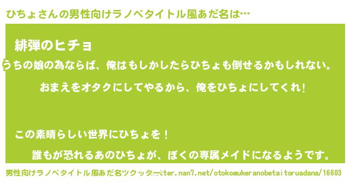 ヒーロー風カッコイイあだ名 | 『正義の使者ひちょ』『ネオヒチョ』 |