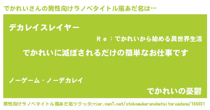 | 胡散臭い通販商品みたいなあだ名 | 『モテモテ間違いなし水晶球…その名も「でかれい」』 |