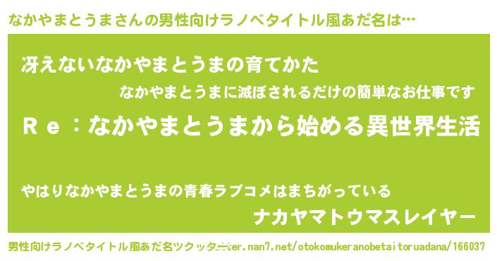 | 女子向けラノベタイトル風あだ名 | 『なかやまとうまストレイドッグス』 |