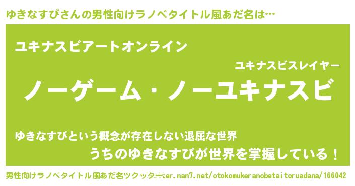 | ヘコむあだ名 | 『ゆきっふぃ~』『ゆきなすび(苦笑)』 |