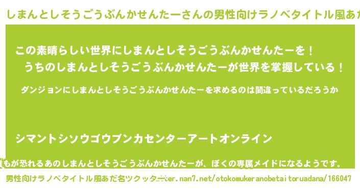 | 女子向けラノベタイトル風あだ名 | 『しまんとしそうごうぶんかせんたーの卵を拾いまして』 |