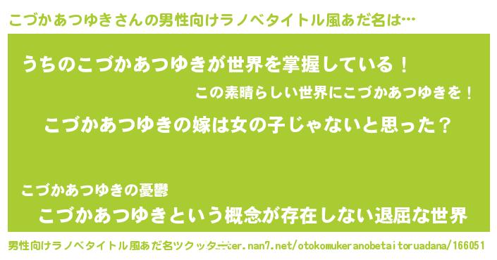 | 女子向けラノベタイトル風あだ名 | 『こづかあつゆき様がみてる』 |