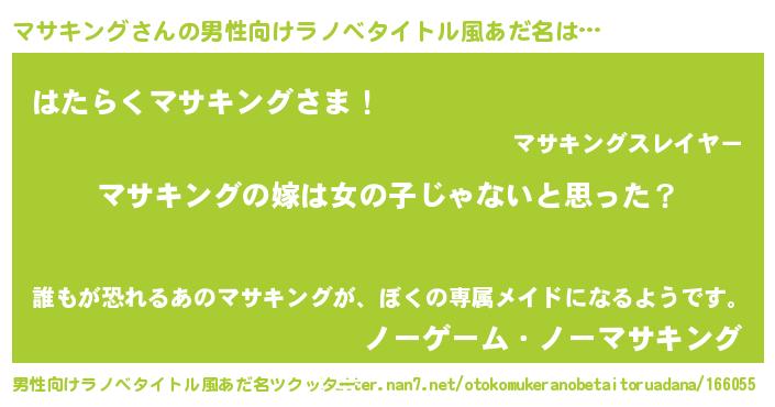 | 女子向けラノベタイトル風あだ名 | 『マサキング様がみてる』 |