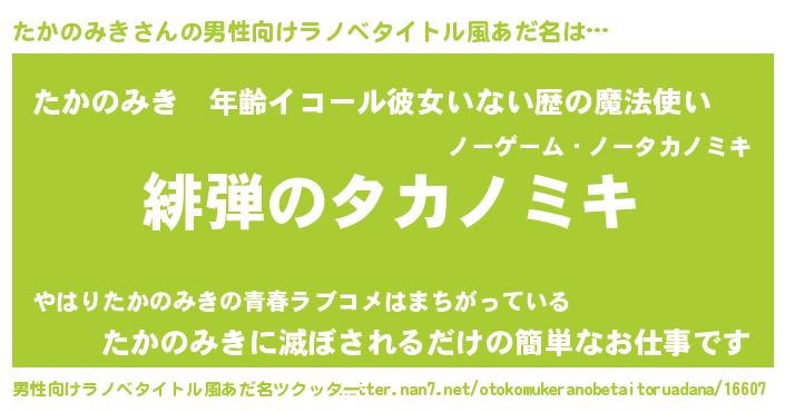 | ヒーロー風カッコイイあだ名 | 『正義の使者たかのみき』『仮面タカダー』 |