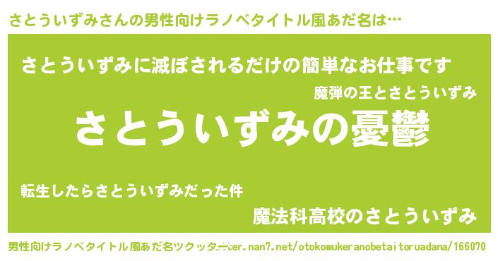 | 胡散臭い通販商品みたいなあだ名 | 『必ず成功する水晶球…その名も「さとういずみ」』 |