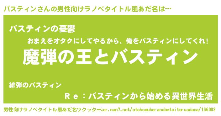 | 女子向けラノベタイトル風あだ名 | 『乙女ゲームの破滅フラグしかない悪役バスティンに転生してしまった…』 |