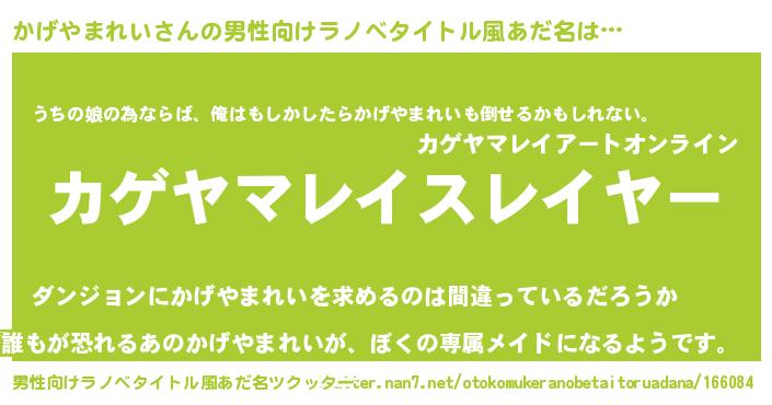| 料理風あだ名 | 『かげやまれいごはん』 |