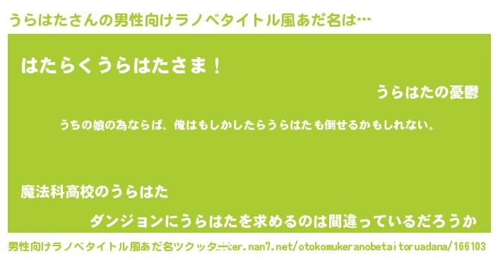 | 胡散臭い通販商品みたいなあだ名 | 『運命の人と巡り会える高級そうな壺…その名も「うらはた」』 |
