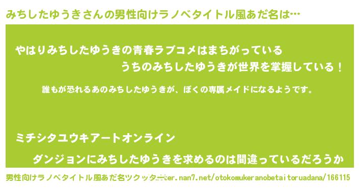 | ヘコむあだ名 | 『みちしたゆうき(爆)』『牛乳』 |