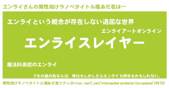 | ヒーロー風カッコイイあだ名 | 『ネオエンライ』『ウルトラエンライマン』 |
