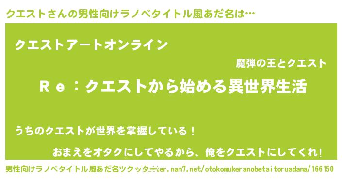 ヘコむあだ名 | 『クエにゅー』『クエスト(笑)』 |