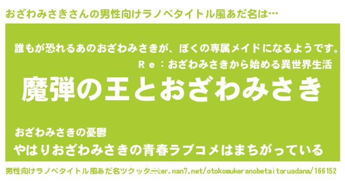 | 女子向けラノベタイトル風あだ名 | 『乙女ゲームの破滅フラグしかない悪役おざわみさきに転生してしまった…』 |