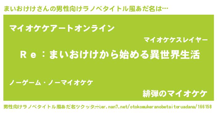 | 女子向けラノベタイトル風あだ名 | 『闇のまいおけけ』 |