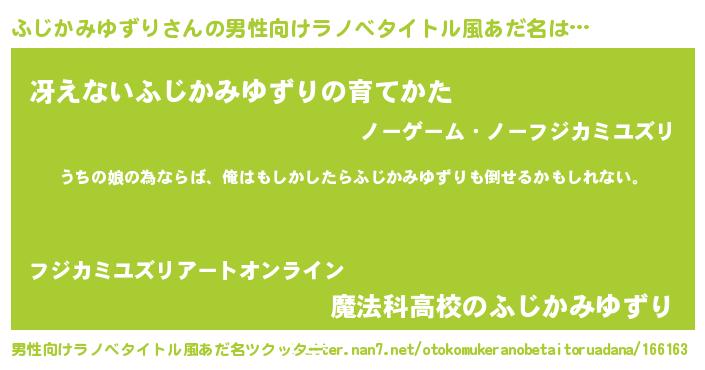 | 意味不明あだ名 | 『ふじかみゆずりフォーエバー』 |