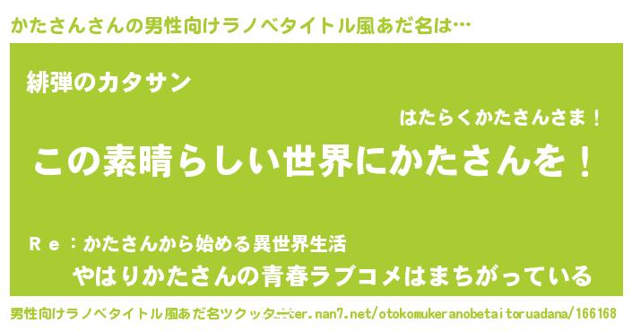 | 意味不明あだ名 | 『住所不定無職かたさん(43歳)』 |
