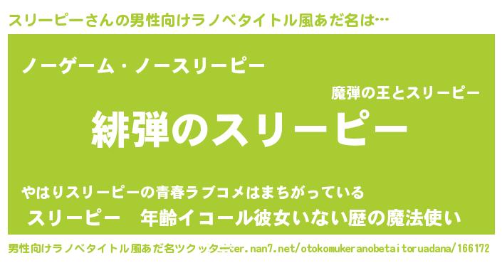 | ヒーロー風カッコイイあだ名 | 『正義の使者スリーピー』『仮面スリダー』 |