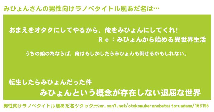 | 欧米人風あだ名 | 『みひょんクリステル』 |