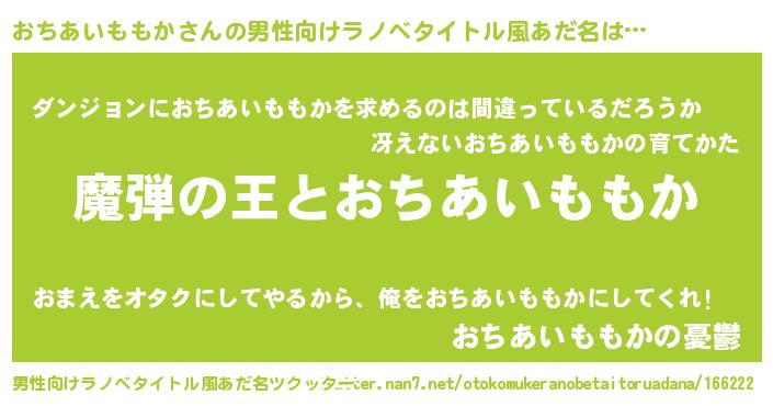 | 女子向けラノベタイトル風あだ名 | 『おちあいももかが死なない童話 林檎のおちあいももかの診療簿』 |