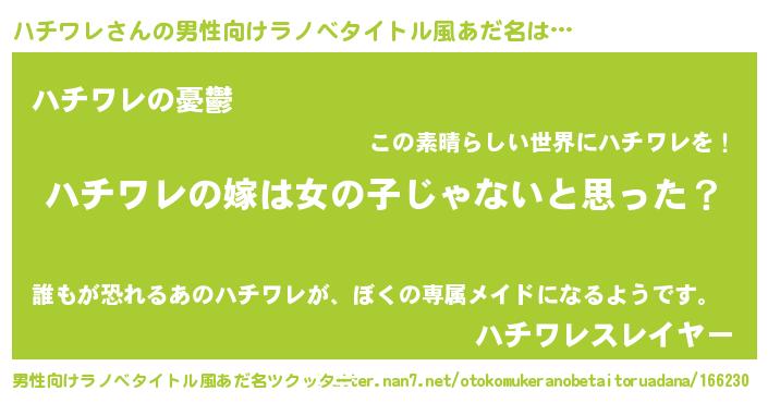 | ヘコむあだ名 | 『ハチお』『ハチにー』『レバニラ』 |