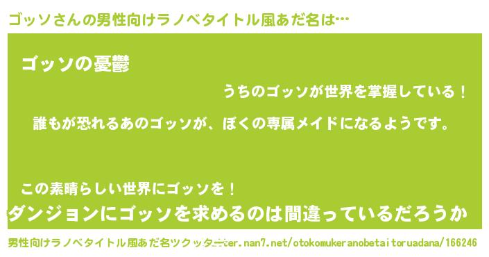 | 胡散臭い通販商品みたいなあだ名 | 『前代未聞の健康食品…その名も「ゴッソ」』 |