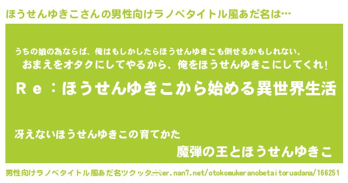 | 女子向けラノベタイトル風あだ名 | 『ほうせんゆきこストレイドッグス』 |