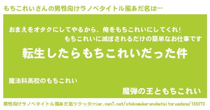 | 胡散臭い通販商品みたいなあだ名 | 『お金では代えられない隕石のかけら…その名も「もちこれい」』 |